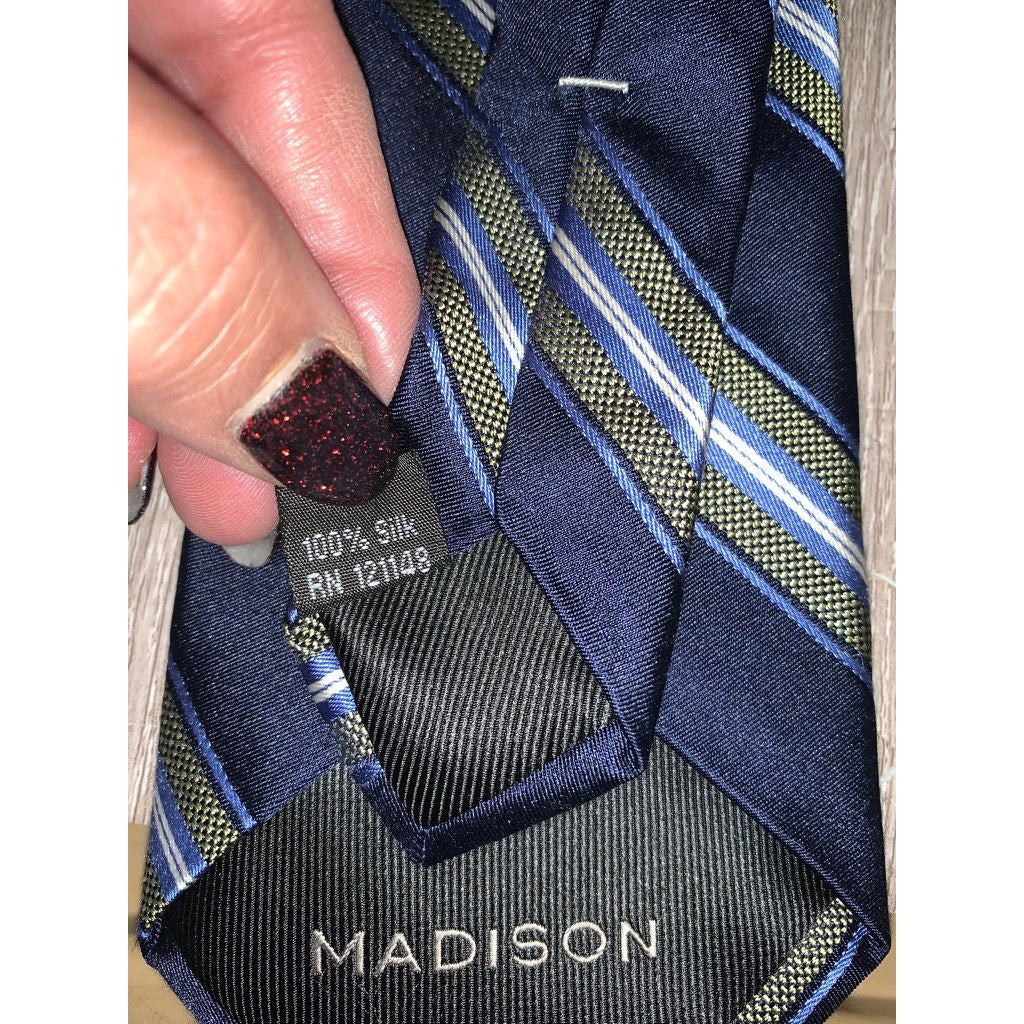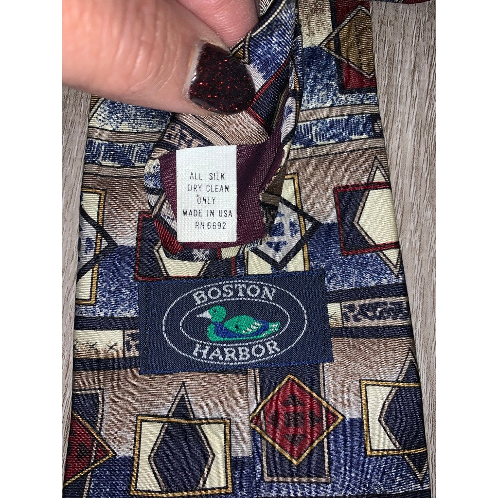 Keywords: men's silk tie set, multicolor designer ties, geometric pattern ties, formal business ties, handmade silk ties, Italian silk ties, USA made ties, classic length ties, men's fashion accessories, pre-owned men's ties, men's designer tie set, formal occasion ties, business attire ties, men's multicolor tie set, men's geometric pattern ties.