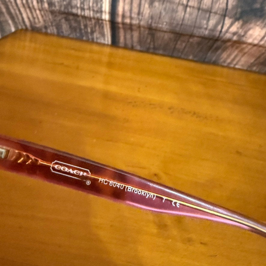 Keywords: Coach sunglasses, unisex eyewear, tortoise shell frames, geometric style glasses, plastic frame sunglasses, HC 8040 Brooklyn, pre-owned sunglasses, fashion accessories, stylish eyewear, unisex fashion, designer sunglasses, casual wear, outdoor events, everyday use, trendy glasses.