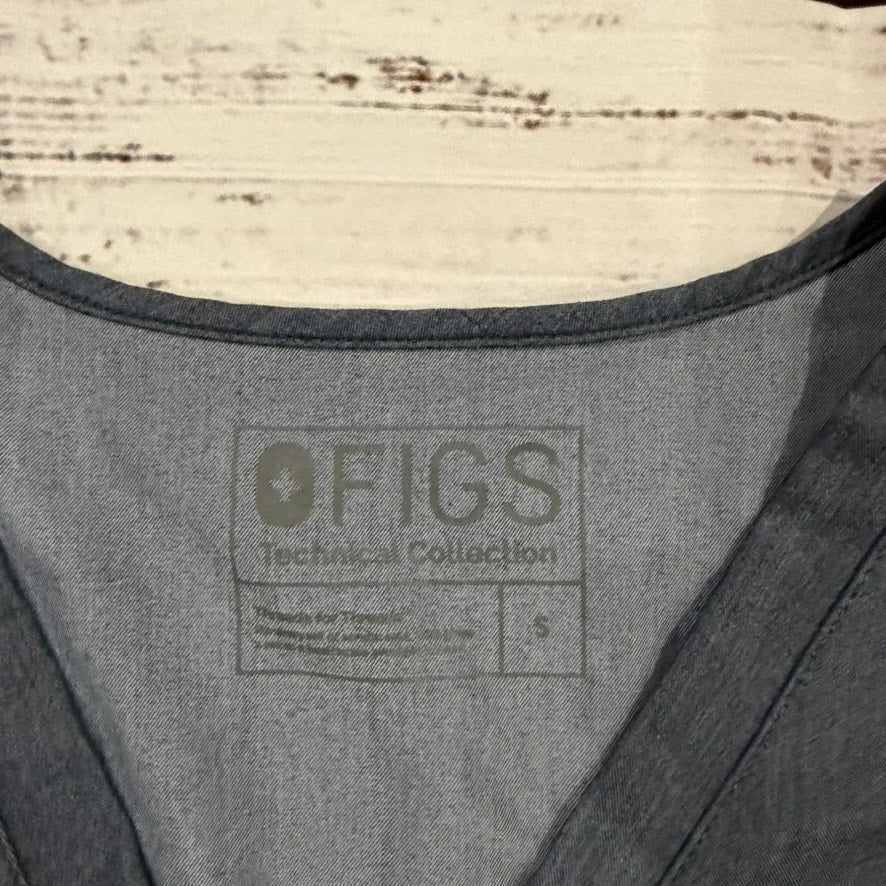 Keywords: FIGS blouse, women's blouse, gray blouse, V-neck blouse, short sleeve blouse, solid pattern blouse, workwear blouse, pre-owned blouse, high-quality fabric, three pockets blouse, regular fit blouse, all seasons blouse, women's workwear, FIGS clothing, women's fashion top