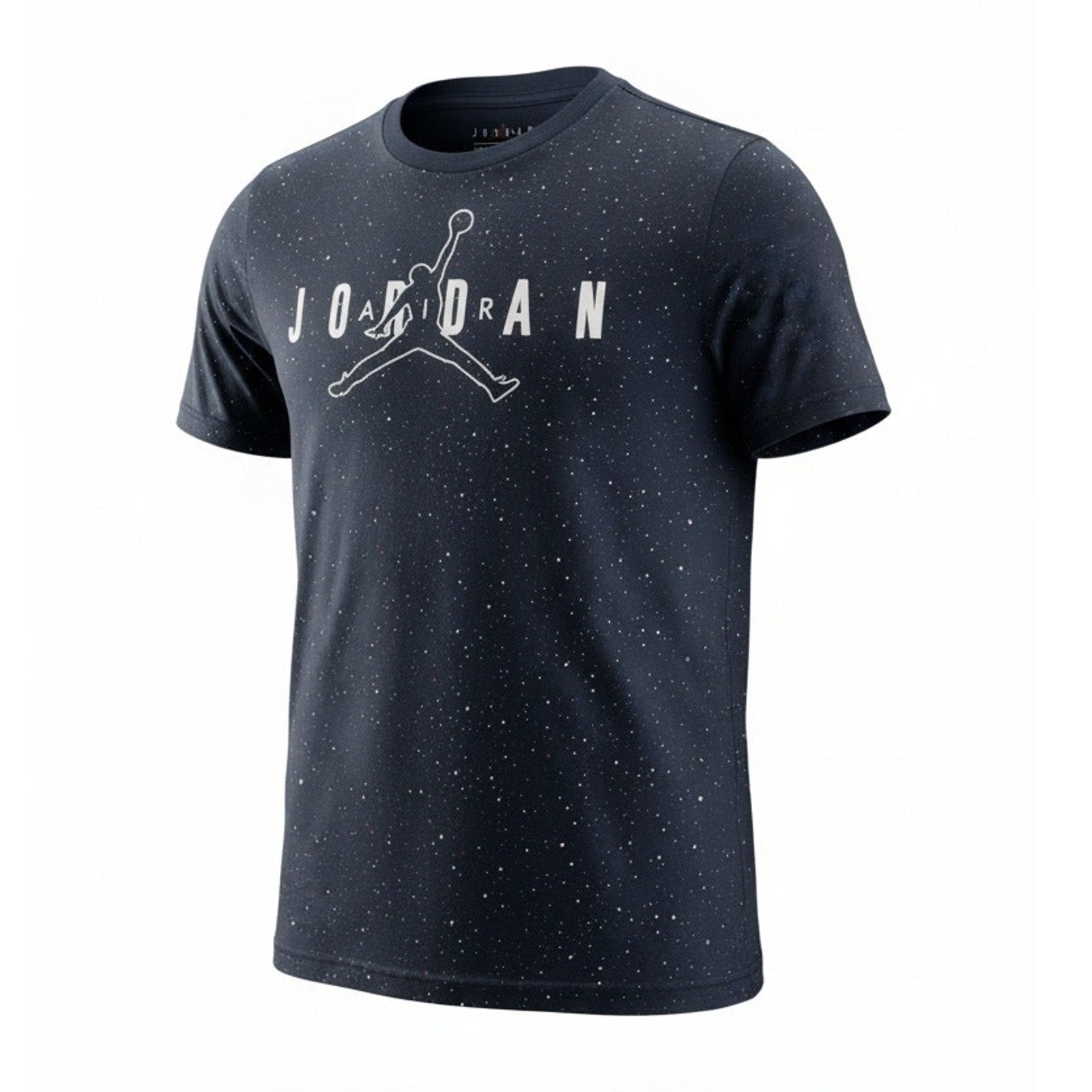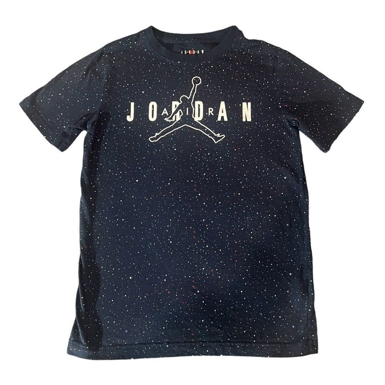 Keywords: Air Jordan shirt, Jordan Jumpman tee, boys youth XL 13-15, black graphic t-shirt, speckled all over print, galaxy print shirt, short sleeve crew neck, kids basketball shirt, Jordan logo top, youth streetwear, athletic casual tee, boys sports t-shirt, Jumpman logo shirt, pullover basic tee, Jordan boys clothing