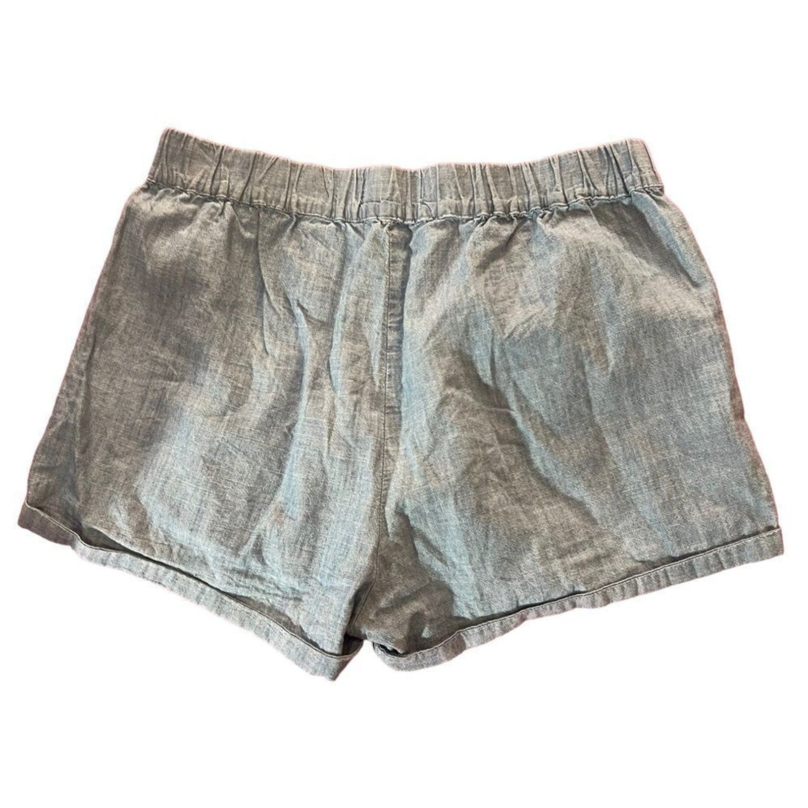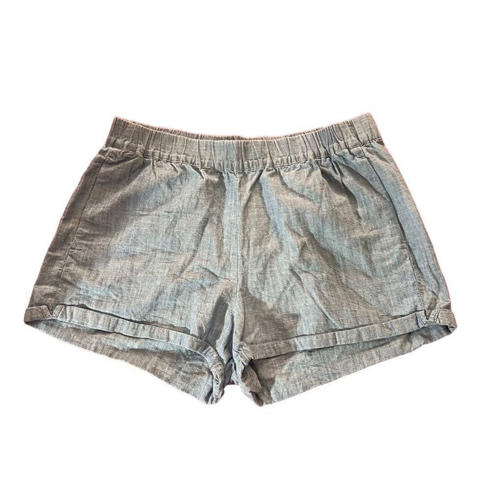 Keywords: Madewell shorts, chambray shorts, pull on shorts, elastic waist shorts, women’s small shorts, light blue shorts, relaxed fit shorts, mid rise shorts, cuffed hem shorts, side pocket shorts, lightweight summer shorts, casual weekend shorts, spring summer shorts, solid blue shorts, travel shorts