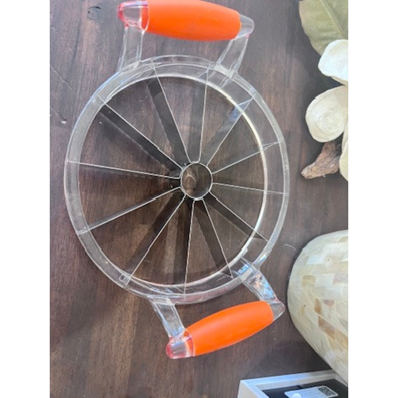 Keywords: watermelon slicer, melon slicer, watermelon cutter, melon cutter, wedge slicer, fruit slicer tool, 12 slice cutter, center corer, dual handle slicer, stainless steel blades, kitchen gadget, picnic fruit prep, BBQ fruit tool, cantaloupe slicer, honeydew slicer