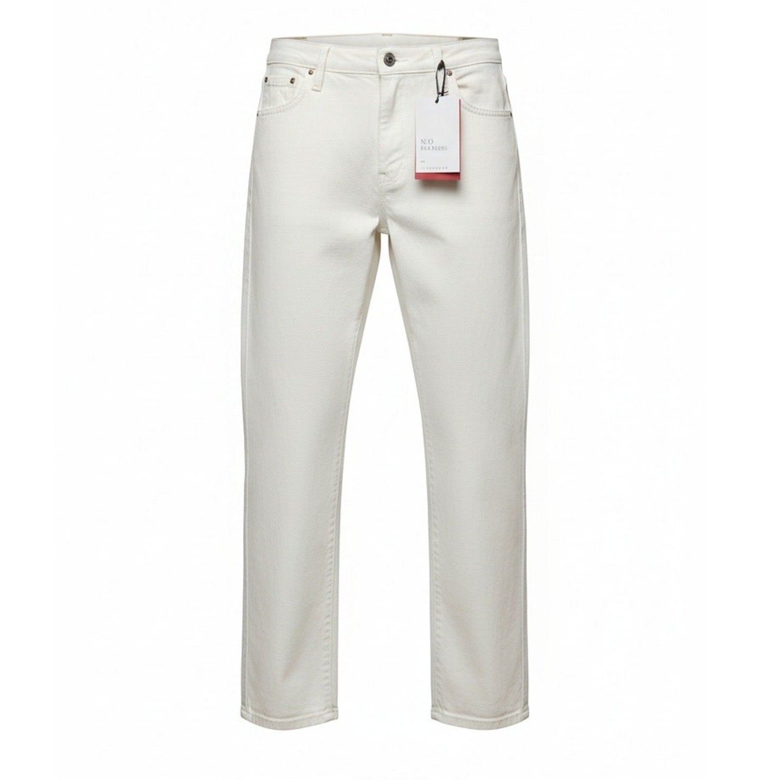 Keywords: 10.11 Studios jeans, Ten Eleven denim, womens white jeans, boyfriend jeans women, relaxed fit jeans, straight leg denim, mid rise jeans, size 28 jeans, white denim pants, 5 pocket jeans, button zip fly jeans, classic minimalist style, casual weekend outfit, smart casual jeans, solid white jeans