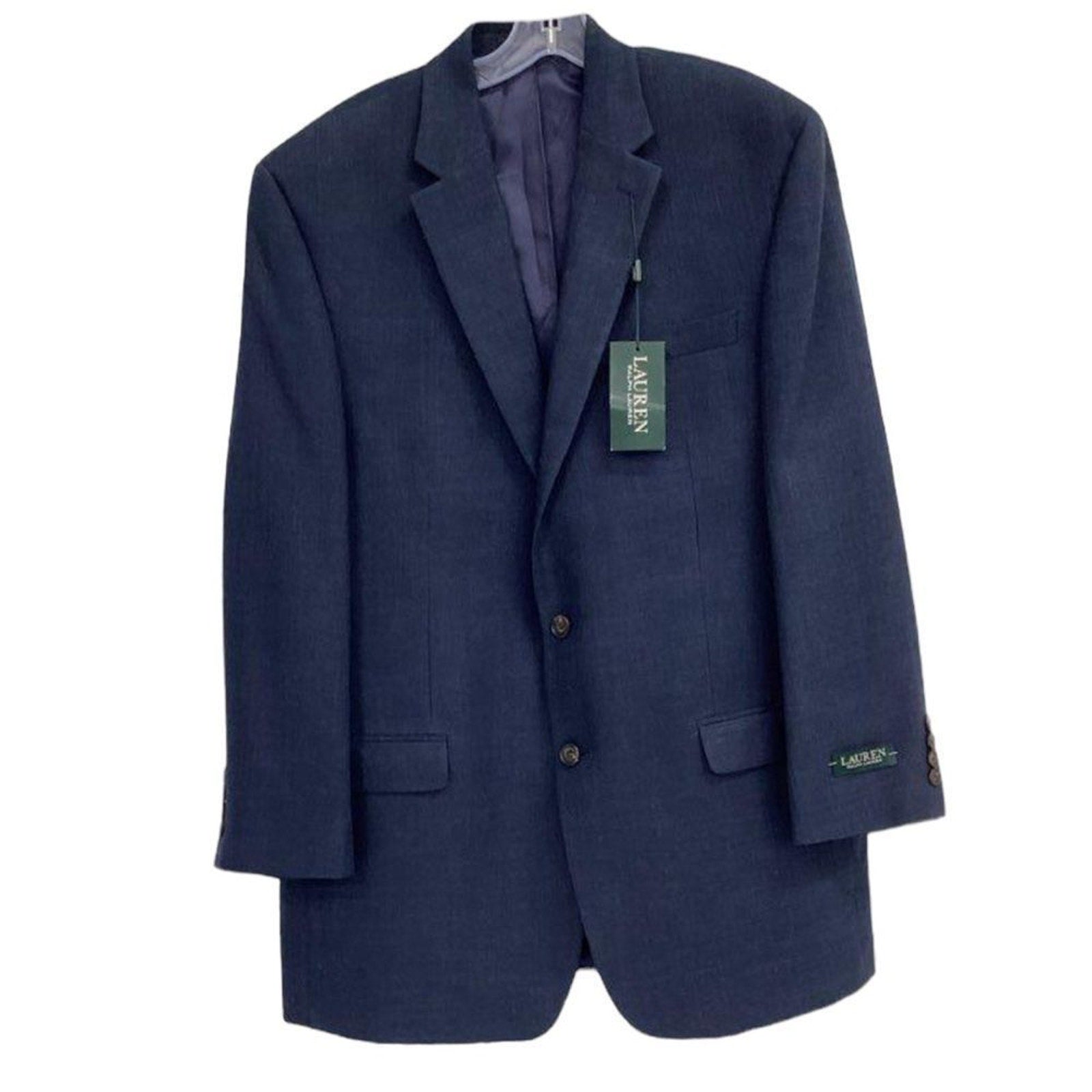 Keywords: Lauren Ralph Lauren blazer, men’s sport coat, navy blue blazer, 46L long jacket, wool blend blazer, two button sport coat, notch lapel blazer, single vent blazer, fully lined blazer, classic fit blazer, formal wedding blazer, business suit jacket, solid navy sportcoat, men’s dress blazer, designer blazer men