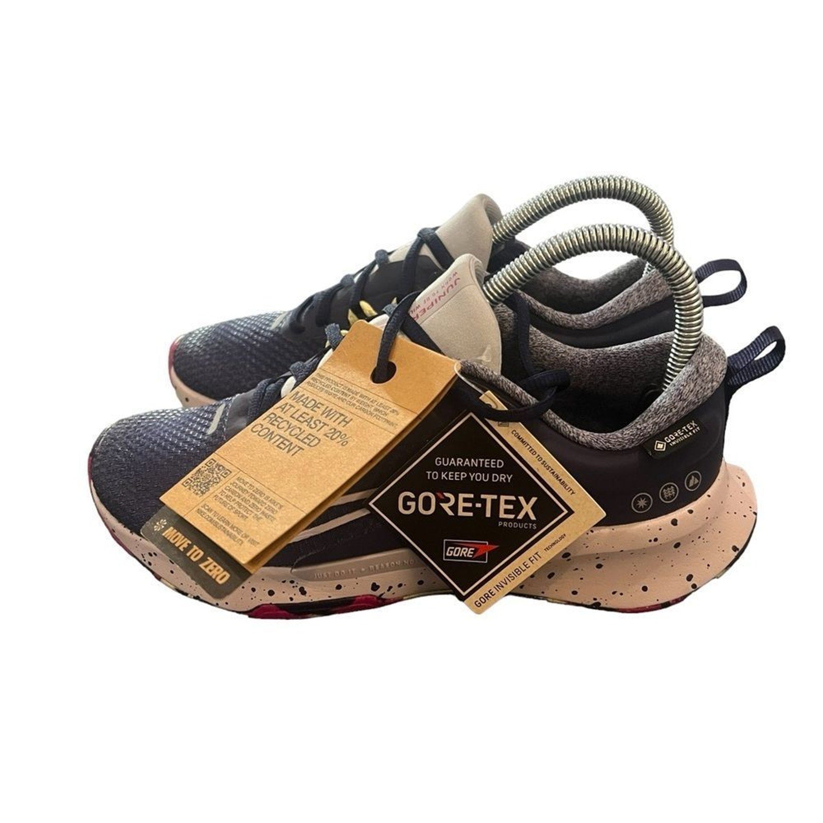Keywords: Nike Juniper Trail 2 GORE-TEX, Nike trail running shoes women, waterproof running shoes size 6, women’s hiking shoes waterproof, navy blue Nike sneakers, GORE-TEX trail shoes, cushioned trail runners, rubber outsole trail traction, lace up athletic shoes women, low top outdoor sneakers, Move to Zero recycled content, women’s outdoor running shoes, Nike Juniper Trail women size 6, waterproof sneakers for travel, trail running hiking shoes