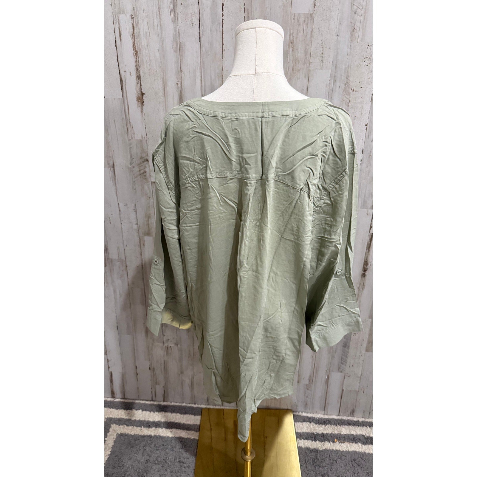 NWT Philosophy Woman Blouse Womens 2X Sage Green Tunic V-Neck Roll Tab Sleeves