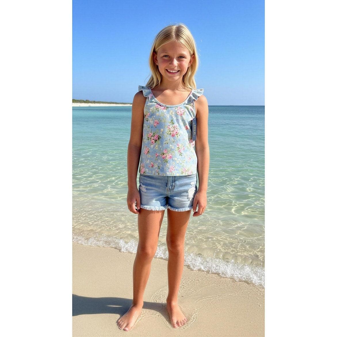 NWT Polo Ralph Lauren Girls' Floral Ruffle Tank Top Blue Size Large 12-14 Casual