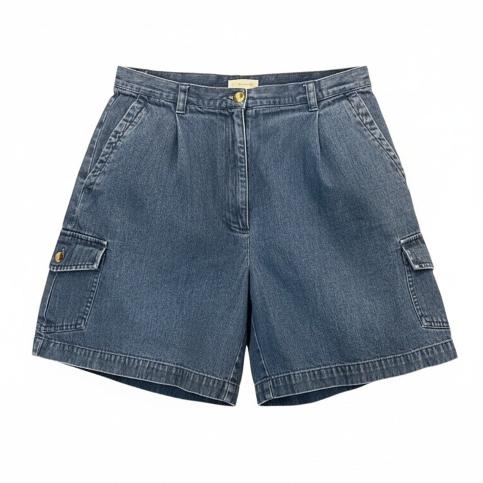 Keywords: Talbots Petites shorts, womens petite shorts, size 12P shorts, denim cargo shorts, utility shorts women, high rise shorts, pleated denim shorts, medium wash denim, 100% cotton shorts, relaxed fit shorts, blue denim shorts, cargo pocket shorts, summer casual shorts, travel shorts women, vintage inspired cargo shorts
