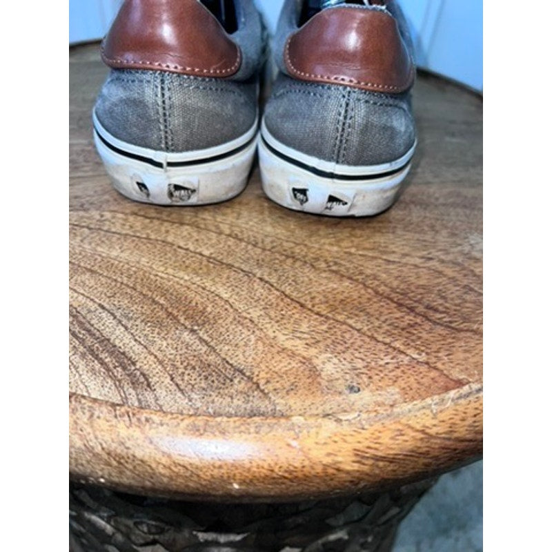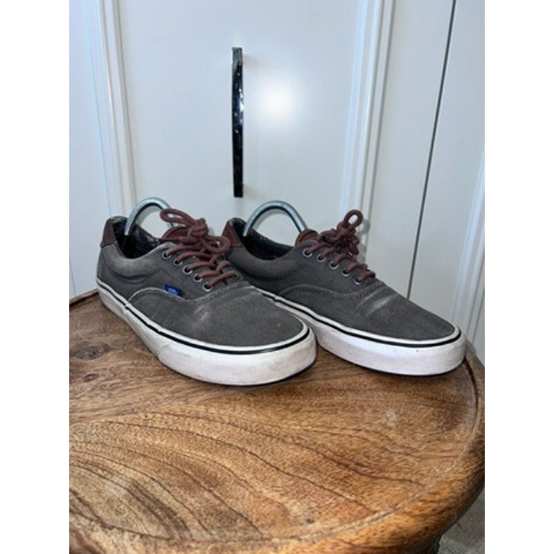 Keywords: Vans sneakers, men's shoes, size 9.5, gray canvas shoes, casual footwear, skateboarding shoes, streetwear style, padded collar sneakers, lace-up sneakers, Vans Era 59, solid pattern shoes, rubber outsole, all-season shoes, round toe sneakers, pre-owned Vans shoes.
