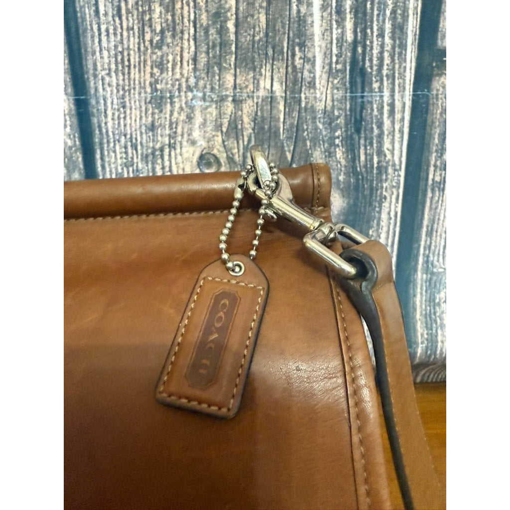 Keywords: Coach briefcase, leather document case, unisex leather bag, brown leather briefcase, business leather bag, casual leather bag, vintage Coach bag, 1990s Coach briefcase, natural cowhide leather, adjustable shoulder strap, top handle briefcase, turn-lock closure, spacious leather bag, zippered pocket briefcase, classic Coach tag.